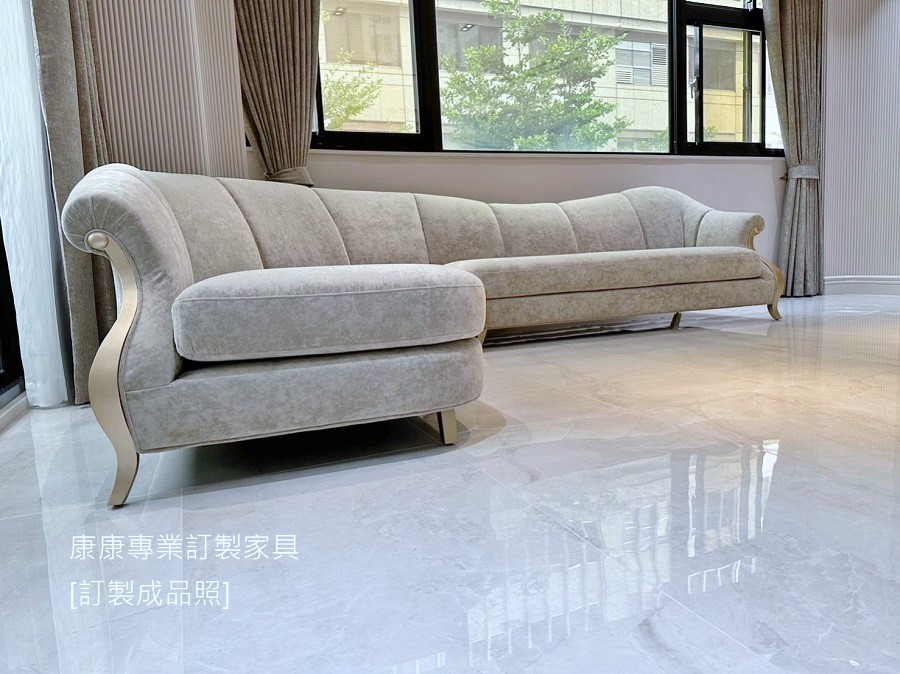 材質:進口防汙貓抓布/實木腳烤漆香檳金