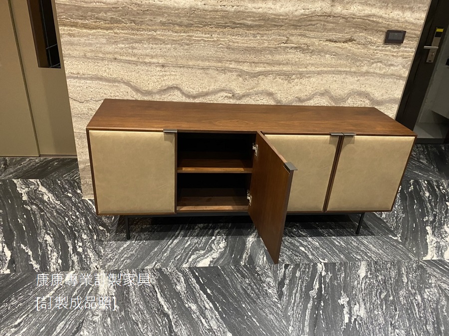 材質: 櫃體 貼胡桃木皮 /面繃人造皮/黑鐵腳