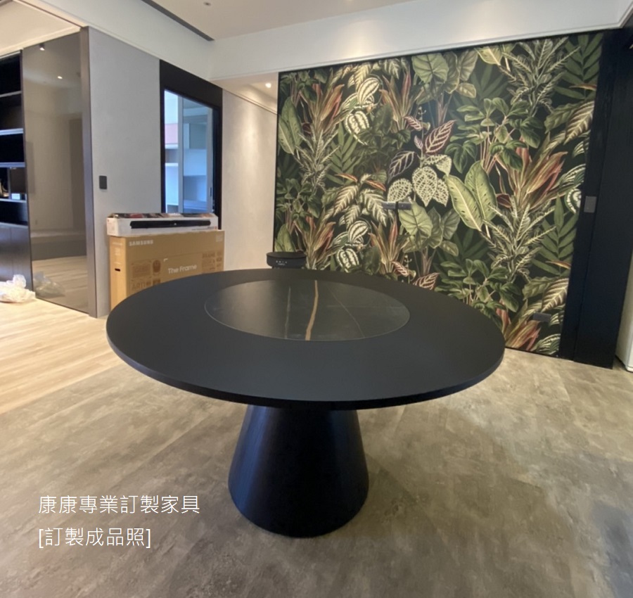 材質: 木作染黑/轉盤陶板, 直徑80cm