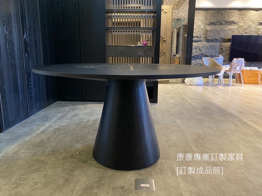 材質: 木作染黑/轉盤陶板, 直徑80cm
