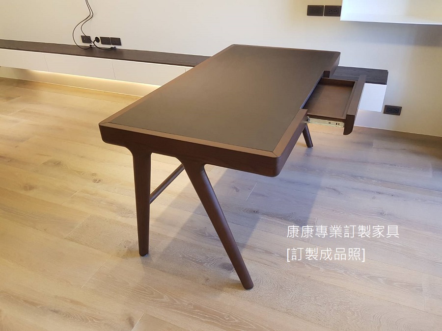 材質:檯面-再生馬鞍皮, 栓木實木腳染胡桃色