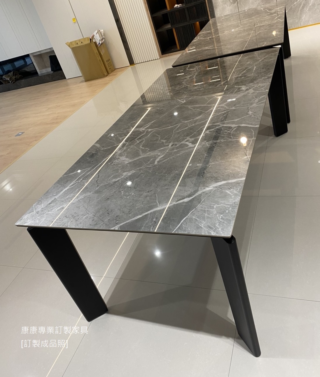材質:桌面-陶板安納灰 /桌腳-栓木實木染黑+金屬