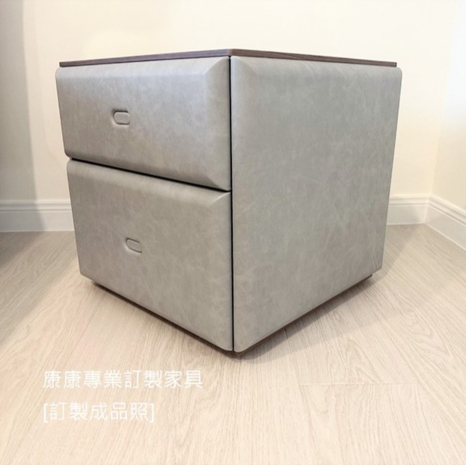 材質:檯面胡桃木皮/櫃體繃人造皮