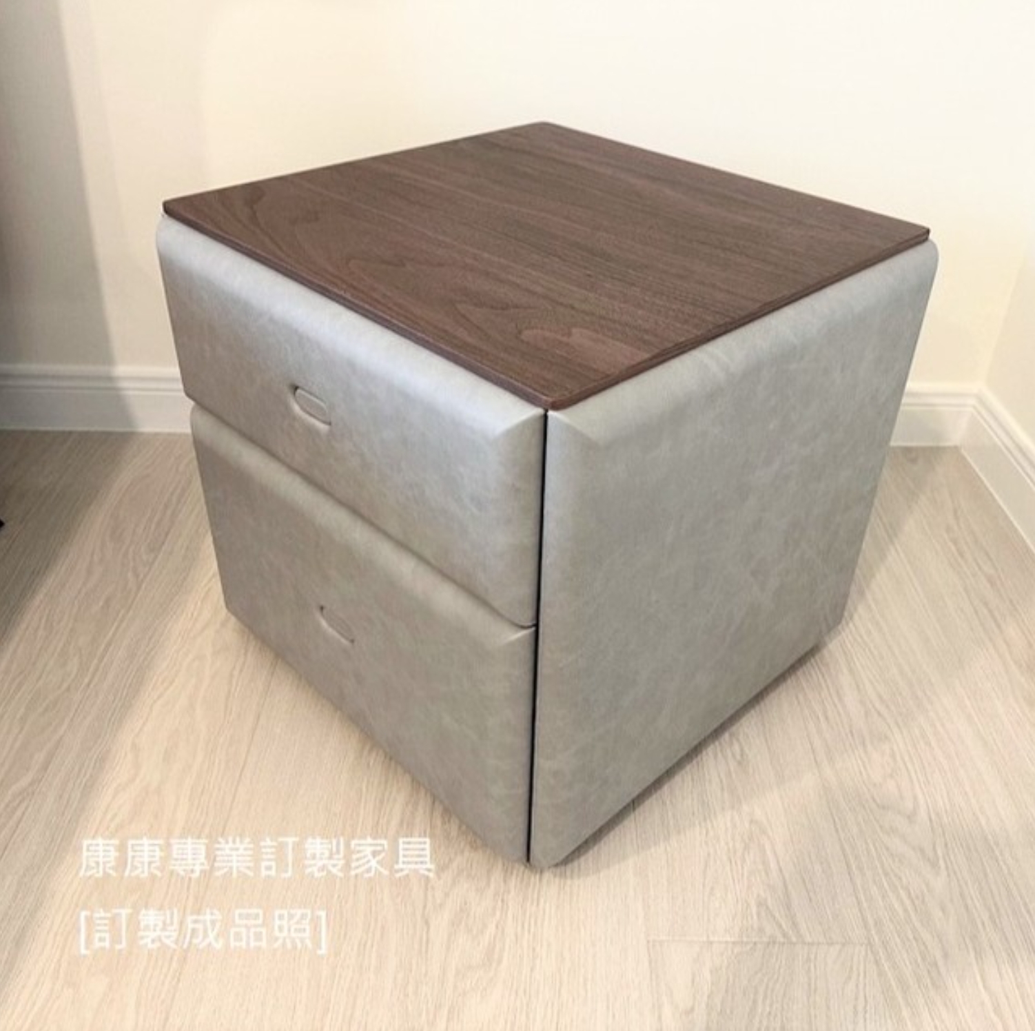 材質:檯面胡桃木皮/櫃體繃人造皮