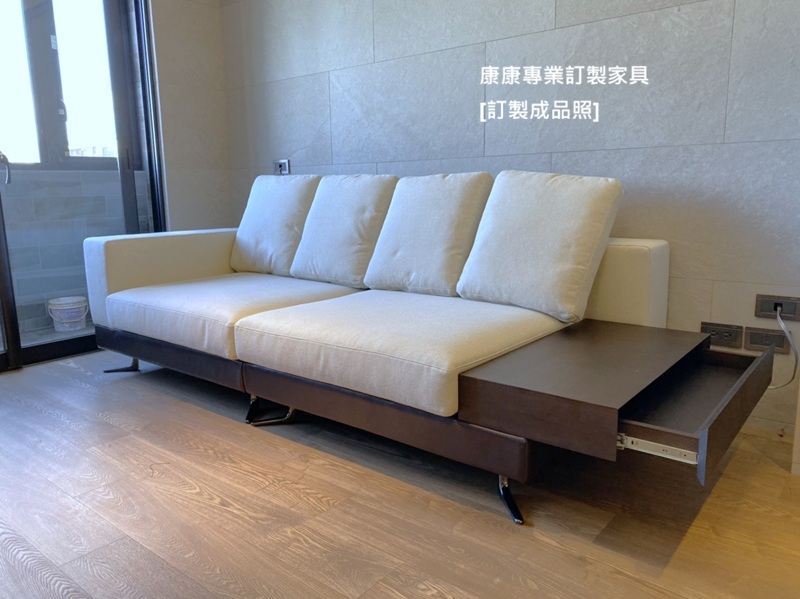 材質: 進口抗汙布&人造皮/側几實木皮/鍍鈦腳