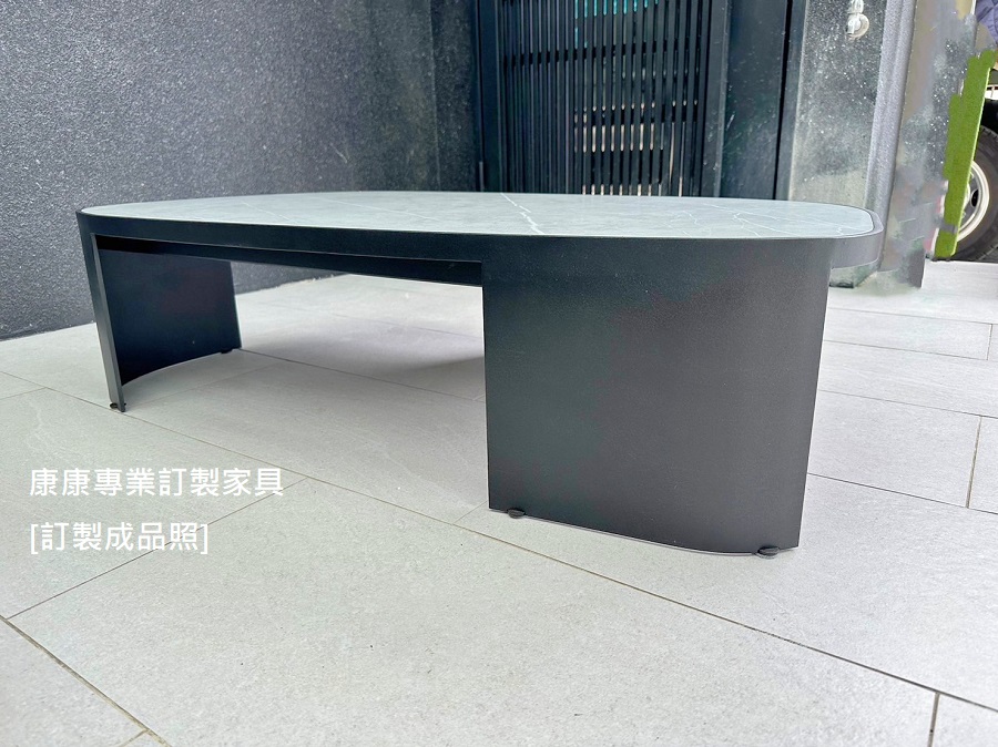 材質:桌面耐麗石/腳座黑鐵烤漆咖啡砂
