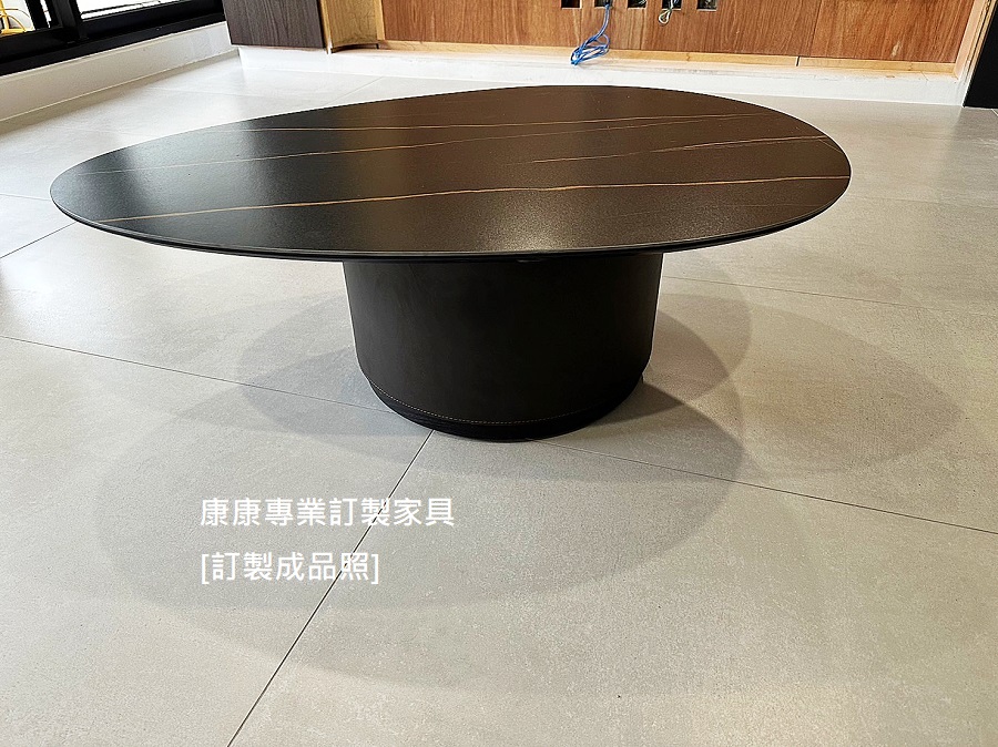 材質:桌面-黑色系陶板/桌腳-木作貼再生馬鞍皮