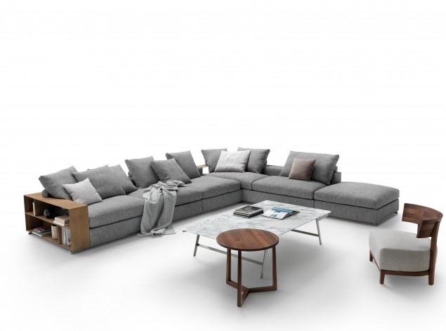 Groundpiece沙發採活動式的背墊,後面搭配圓筒,