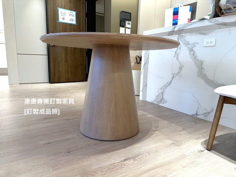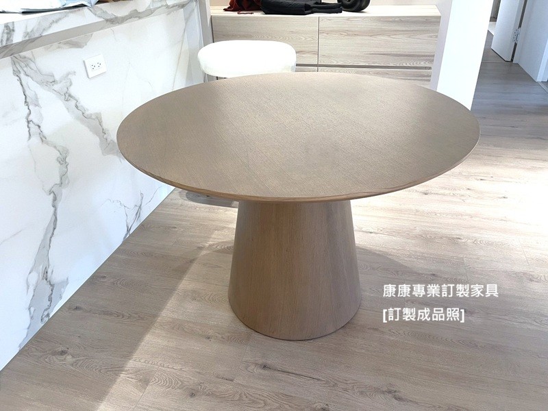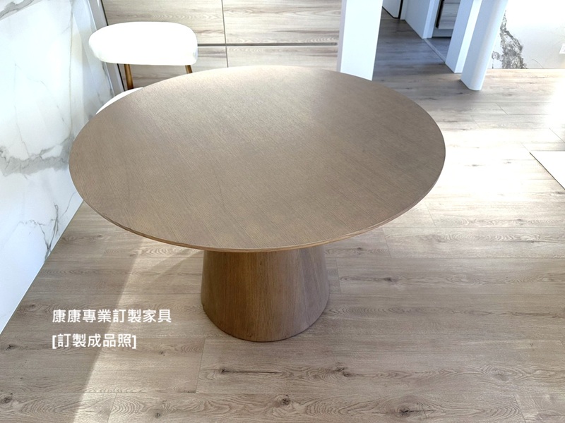 如果是圓桌,希望桌面色澤整齊一致,就建議選擇實木皮。