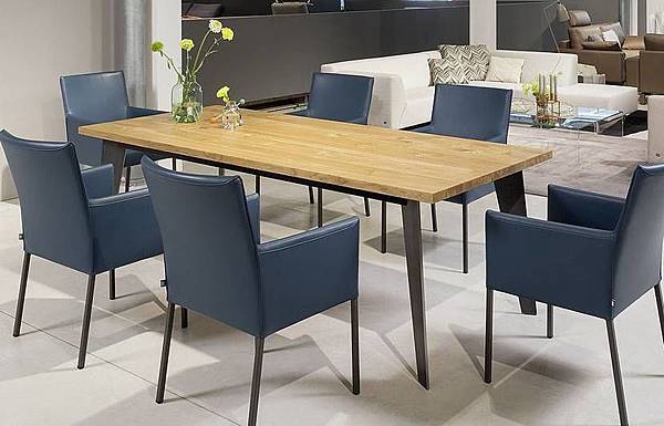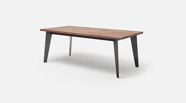 這張979餐桌,現代風格設計,實木桌面結合金屬桌腳,